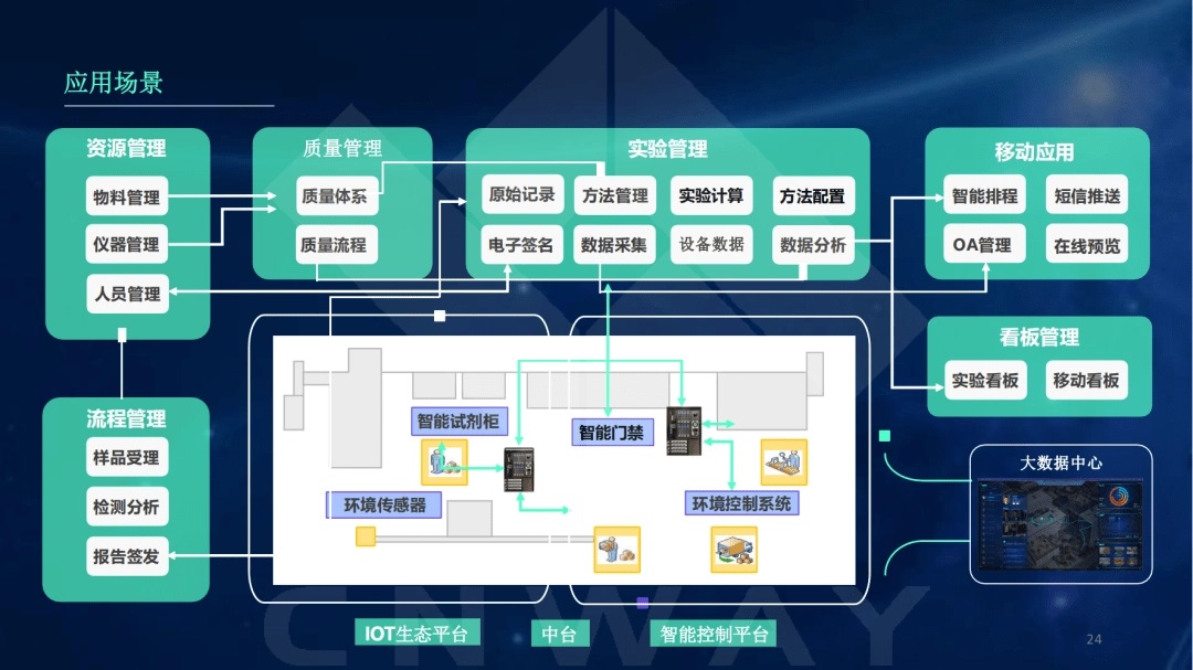 得益于物联网,大数据、云计算、人工智能、5G技术的不断迭代和成熟,未来的实验室将变得更加智能。你将看到实验室的人、物、环境三位一体以安全为中心的全面智控一体化,实现资源和信息互联共享、精细化动态化智能管理。数智化的业务转型是在大数据分析和运行实践的基础上,实现智能接单、智能审核、智能非标业务定制等个性化功能,通过大量的数据知识积累和行为确认,确保实验室智能化的可靠性。