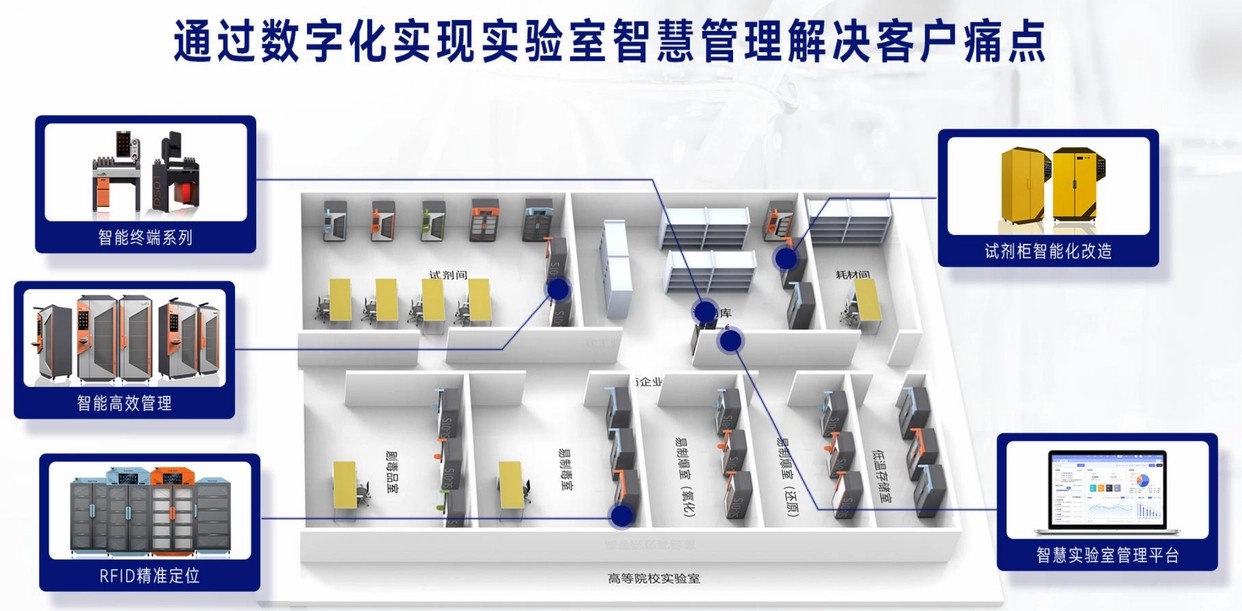 基于这个需求我们开发了一套基于RFID识别技术的智能实验室管理系统,实现实验室固定资产、耗材的采购、分配 针对人员、权限、门禁提供智能化的安全管理使用、盘点等的数智化管理,助力实验室各 对接各类监管系统,实现实验室安全智能化类资产管理的数字化转型。