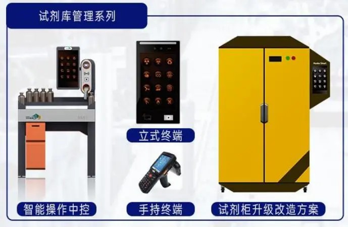 在原有硬件上加装智能改造套件,配备智能操作终端,使传统试剂库对试剂和物资实现更细致的领用权限管理,试剂智能识别,跟踪,定位,出入库精准计量,用量数据自动统计、汇总、上传,补货提醒。
